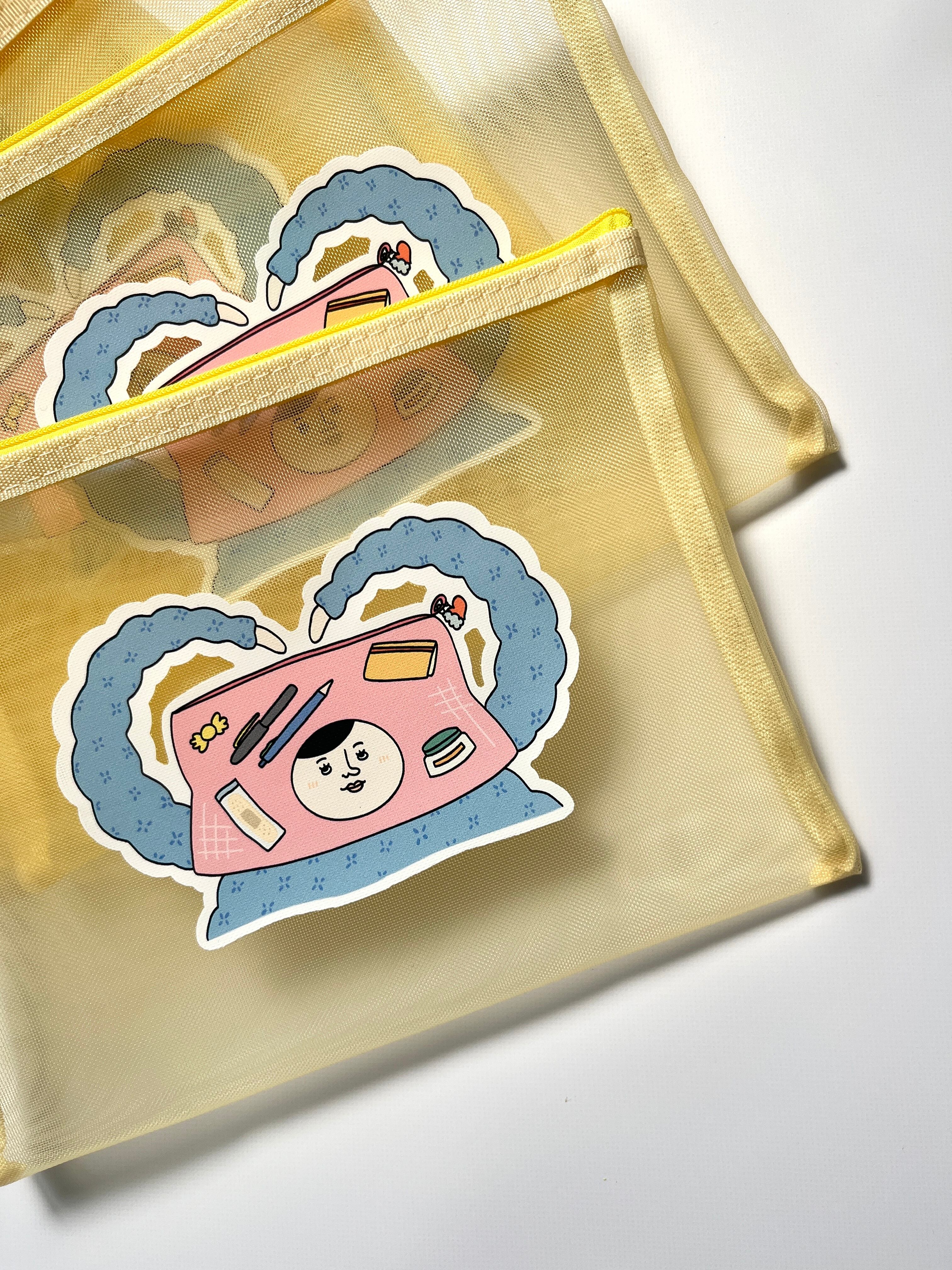 『mugi』のオリジナルイラストをプリントしたメッシュタイプのポーチです♡