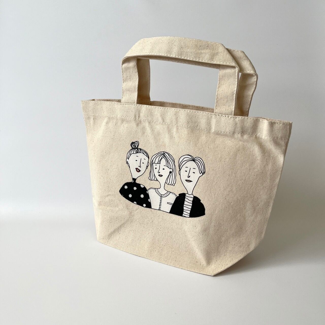 ◎一般的なランチバッグサイズのトートバッグです。およそB5サイズくらいのものが入ります!