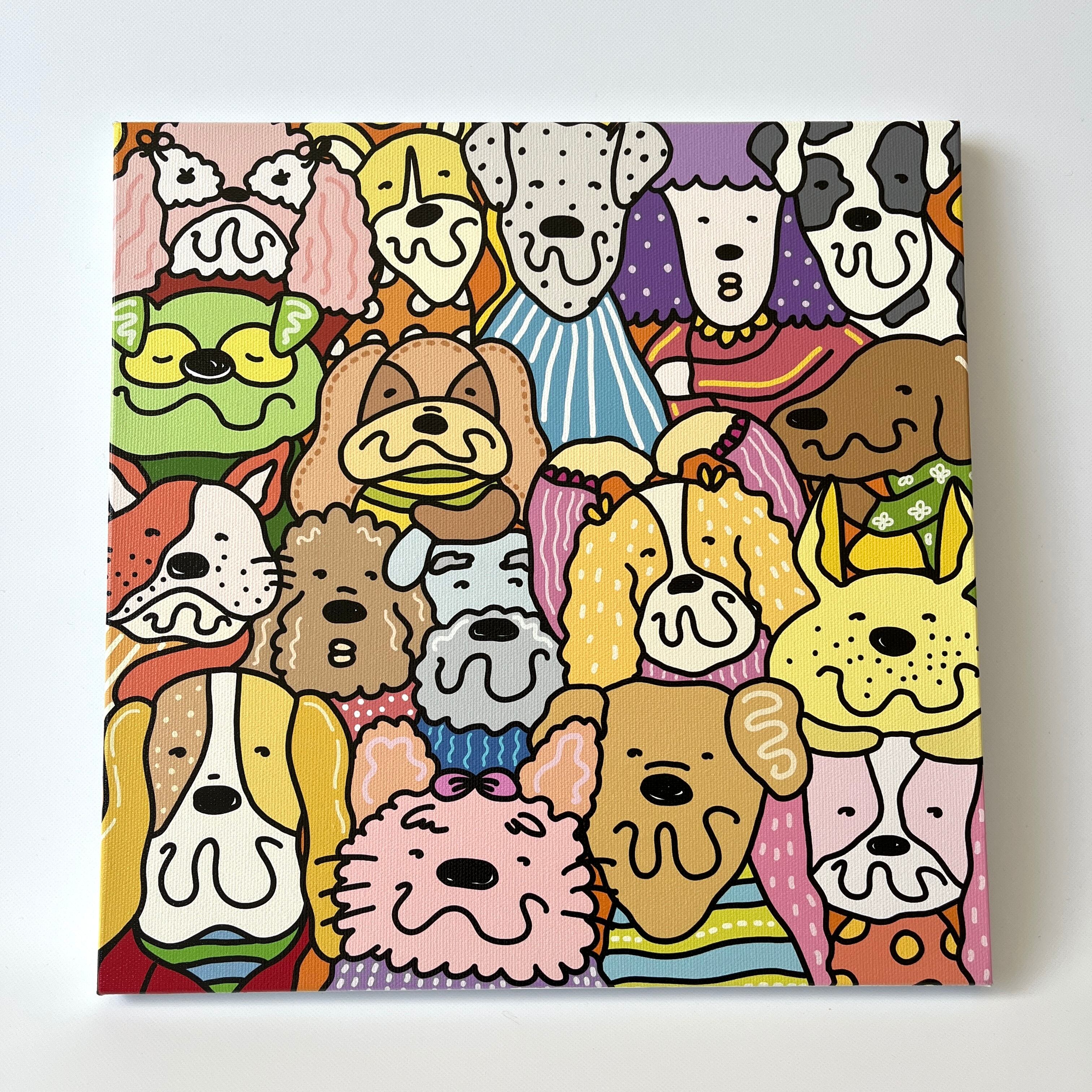 "犬たちの集まり"キャンバスボード